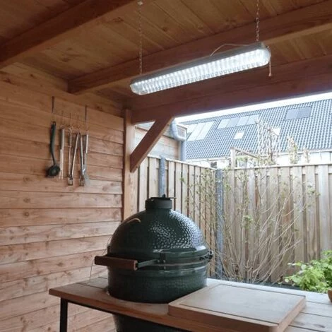 La lampe d’extérieur robuste avec ses deux chaînes de suspension de 34 cm et son support de montage est facile à accrocher sur votre terrasse, abri de voiture ou jardin et dans des endroits sans électricité disponible. Le panneau solaire intégré convertit la lumière du soleil en énergie, qui peut produire jusqu’à 1 000 lumens, fournissant une lumière blanche et chaude lorsqu’il commence à faire sombre à l’extérieur.