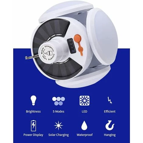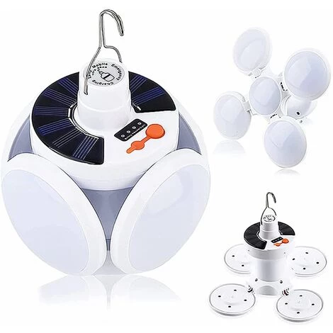 Lampe de camping LED pliable : la lampe de camping avec 45 LED 5730, perles de lampe, haute luminosite et longue duree de vie. 4 panneaux reglables fournissent un eclairage a 360¡ã et peuvent etre utilises comme source d’alimentation de secours pour l’eclairage de secours.