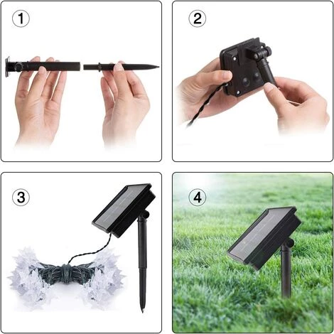 - 【Service & Remarque】 – La luminosité de la chaîne lumineuse à l’extérieur de l’énergie solaire ne peut pas être comparée à celle de l’électricité domestique, seul l’effet décoratif ne peut pas être éclairé. Si vous n’êtes pas satisfait ou avez un problème avec les guirlandes solaires extérieures, nous encourageons les retours / échanges inconditionnels pendant 30 jours.