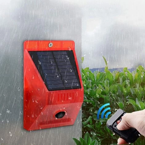【Télécommande】: Alarme sonore et lumineuse de 129 dB; Économie d’énergie de charge solaire et protection de l’environnement; Induction humaine à 5-8 mètres de distance; Niveau IP65 extérieur étanche à la pluie; Télécommande Pratique; Distance de fonctionnement à distance 10-200 mètres. 8 flashs LED rouges sont très brillants pour être remarqués.