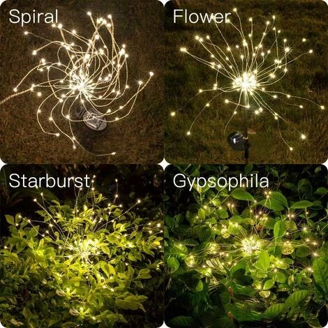 MINKUROW Lumière Solaire De Jardin, Lumière Solaire De Feu D’artifice De 105 LED, Lumière De Paysage Extérieur De Bricolage Résistant Aux Intempéries Décoratif Pour Le Chemin De Patio De Champ De Pelouse De Jardin (blanc Chaud, 1 Paquet)