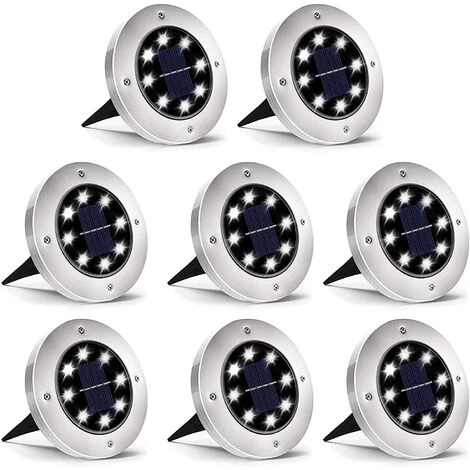 Lampes solaires de jardin: Chaque lampe solaire dispose de 8 LED, adopte une lampe solaire avancée, à économie d’énergie de LED, de 600 mAh. 8-10 heures de fonctionnement avec 8 heures de soleil, économiser de l’énergie et respecter l’environnement