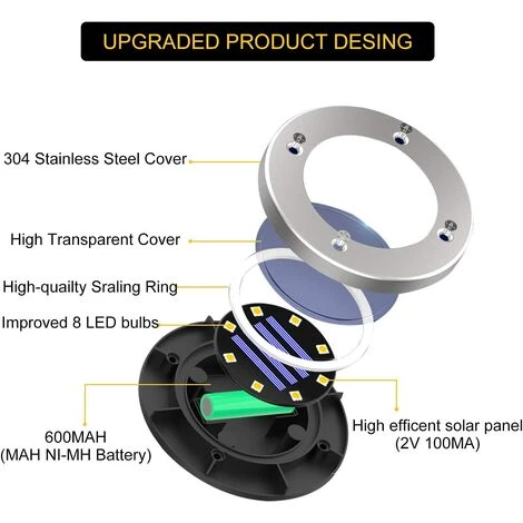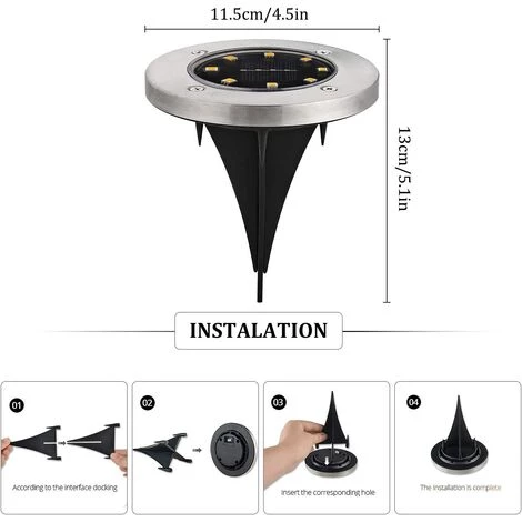8 × lumière du sol solaire lumière solaire