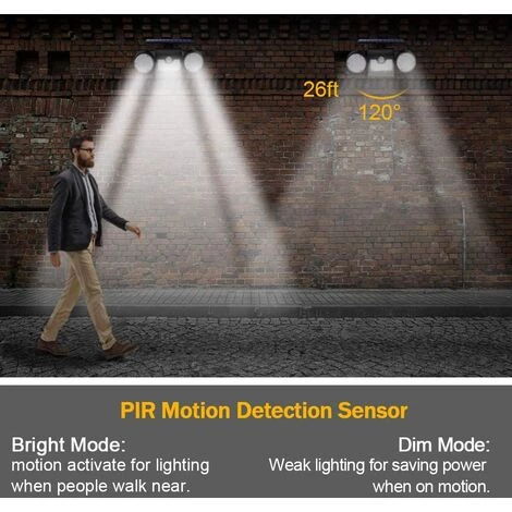 Contrôle intelligent de la luminosité et capteur PIR sensible: les lumières du capteur de mouvement s’allument automatiquement dans l’obscurité ou la nuit, ce qui fournit votre éclairage pour la sécurité et la protection.