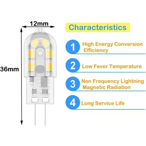 Longueur de l’ampoule G4 : 36 mm, largeur : 12 mm. Veuillez confirmer que la taille de la lampe convient avant d’acheter.