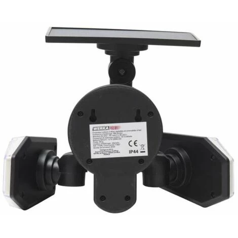 Informations produit: Projecteur solaire 78 LED Marque Werkapro 3 modes d’éclairage Avec 2 têtes orientables de 39 x 2 78 led blanches Tête réglable Avec détecteur de mouvement 360°, rayon de détection de 8 mètres Distance d’induction: 3-5 mètres Angle du capteur: 120 degrés Éclairage très puissant, jusqu’à 300 lumens Batterie Lithium 3,7 volts – 2000 mAh Panneau solaire 0,5 watts – 5 volts Dimensions: L. 17 x H. 17 x P. 10 cm Livré avec système de fixation murale, vis, chevilles