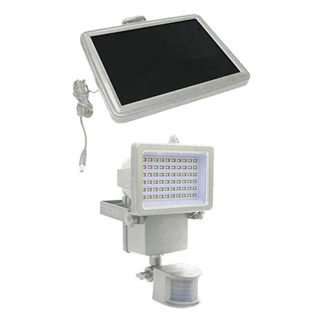 Usage et Installations : Ce projecteur blanc de qualité professionnelle, fonctionne avec un panneau solaire déporté, ce qui vous permet de placer le projecteur à l’intérieur de votre garage et le panneau à l’extérieur (câble d’alimentation de 1,8m). Le projecteur est autonome, il s’allume avec la détection de mouvement lorque la nuit tombe. 100 % étanche, l’indice IP44 vous garantit sa protection quelque soit la météo.
