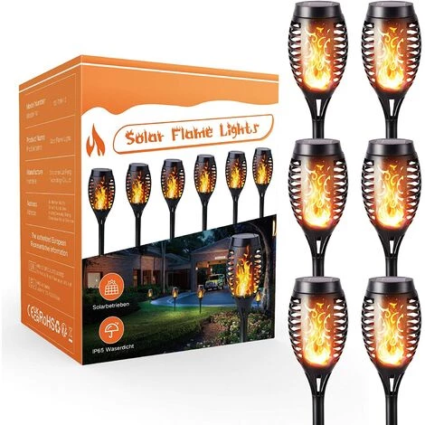 QEDERTEK Lumières Flamme Solaire Exterieure – Lot De 6 Lampe Torche Solaire Étanche, Lampe Solaire Flamme Vacillante Pour Décor, Jardin, Patio, Chemins, Pelouse