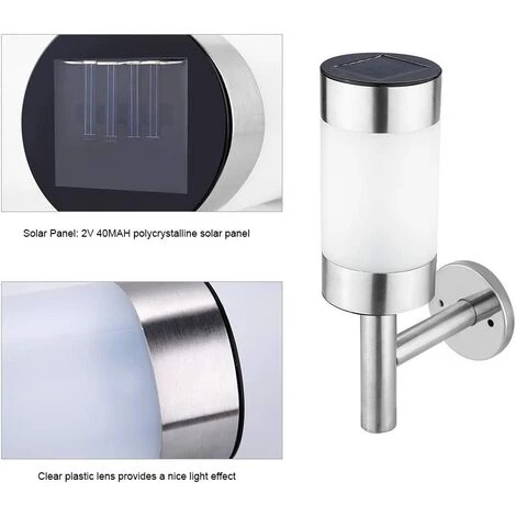 Lumière Solaire Extérieure Murale à LED Lampe à Énergie Solaire pour Paysage Jardin Cour Capteur Lampe Maison Clôture Décoration Acier Inoxydable 2Pcs :