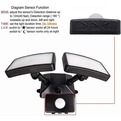 - [Étanche IP54] Ces lumières de sécurité extérieures à LED sont IP54 indice d’étanchéité afin que 2 têtes ne cèdent pas sous la pluie, le grésil ou la neige. Il est donc parfait pour le jardin, la cour, les porches, le parc, le garage, la porte, les entrées, les escaliers, les ateliers, etc.