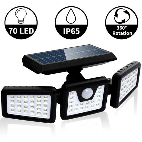 1. Ce puissant projecteur solaire est équipé de 3 têtes de lampe orientées verticalement ou horizontalement, vous permettant d’éclairer indépendamment les entrées, les passages sombres, les cabanes ou les serres de jardin avec 2 angles d’éclairage solaire différents