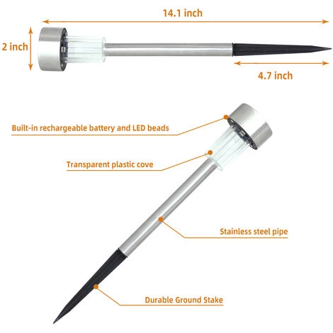 La lampe que nous aimerions partager aujourd’hui est de style tube, fabriquée avec de l’acier inoxydable de haute qualité, de l’ABS et des matériaux plastiques ainsi qu’une finition délicate. Ainsi, pour la durabilité et la fiabilité, vous pouvez vous y fier en toute confiance. Cette lampe LED, alimentée par l’énergie solaire, est très propre et écologique à utiliser. Insérez l’extrémité de la cuspide dans le sol à l’extérieur, elle se tiendra fermement. émettant une lumière blanche brillante, cette lampe pourrait bien guider vos directions. Une lampe aussi pratique convient parfaitement au jardin ou à la cour. Nos lampes de pelouse LED à énergie solaire 24pcs 5W haute luminosité avec abat-jour méritent votre achat!