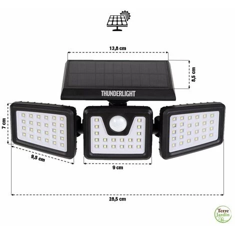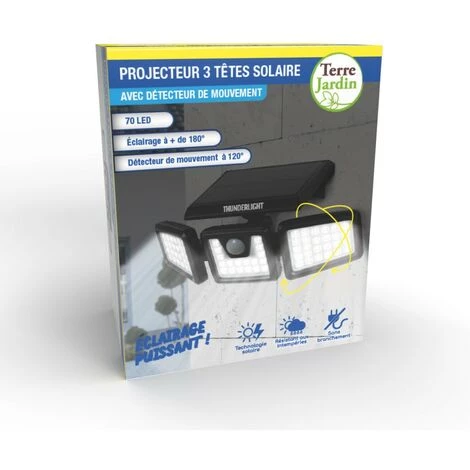 - Misez sur un éclairage infaillible pour vos extérieurs avec ce projecteur mural solaire : ses 3 têtes sont indépendantes et pivotent pour plus de 180° d’éclairage !