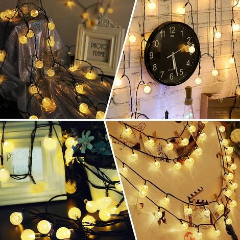 【50 LED Guirlandes Solaires pour l’Intérieur et l’Extérieur】 La boule de cristal de 50 LED de haute qualité avec une ligne de 26 pieds / 7 m rend ces guirlandes solaires plus lumineuses et polyvalentes. Batterie Ni-MH rechargeable 1800 MAH intégrée, cette guirlande lumineuse peut non seulement transformer l’énergie solaire en énergie électrique directement, mais peut également être rechargée via un câble USB, répondre aux besoins de la décoration intérieure et extérieure en même temps.
