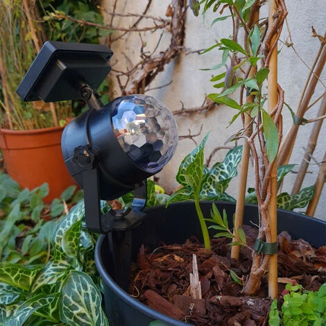 Profitez d’un jardin illuminé façon disco pour vos soirées festives avec ce projecteur LED solaire à planter.