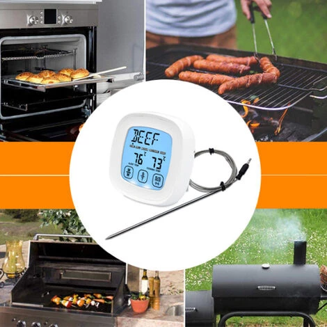 [Ne vous inquiétez pas du temps de cuisson] Le thermomètre pour aliments a une minuterie intégrée avec une fonction « compte à rebours ». Lorsque le temps est écoulé ou que la sonde atteint la température définie, l’alarme émet un bip. Ce thermomètre est idéal pour griller, cuire au four, cuire au four, frire, cuire des bonbons et des chocolats, et tous les types de charcuterie.Emballage:
